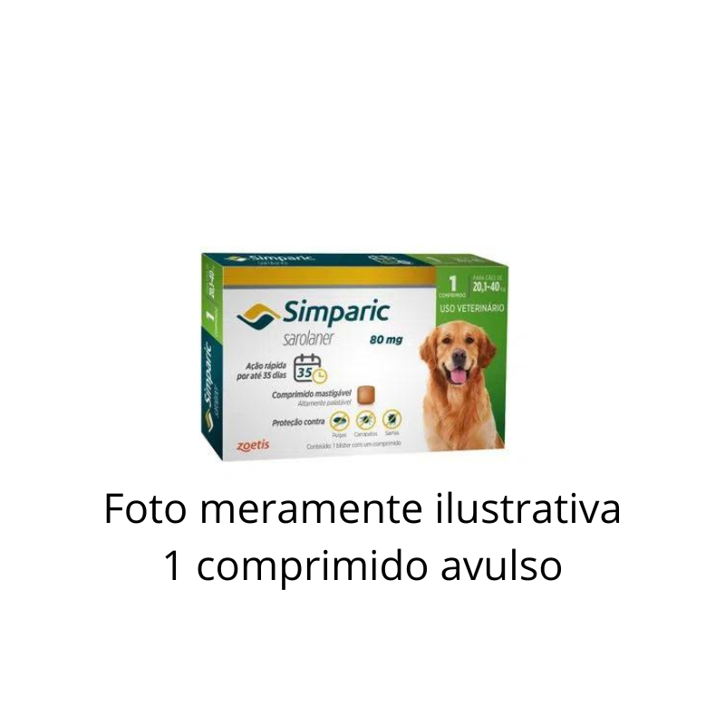 ANTIPULGAS E CARRAPATOS ZOETIS SIMPARIC 80MG 1 COMPRIMIDO AVULSO