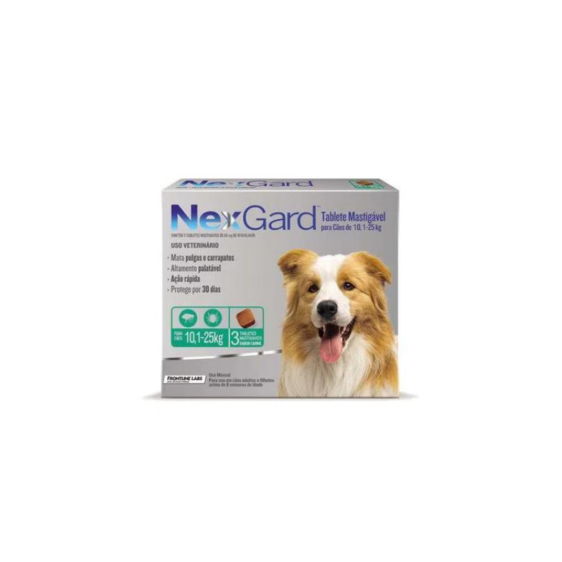 ANTIPULGAS NEXGARD 10,1 A 25KG C/3 TABLETES