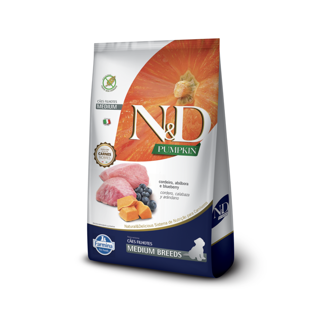 RAÇÃO FARMINA PARA CÃES FILHOTES ND CARNE FRESCA PUMPKIN CORDEIRO PUPPY MEDIUM 2,5KG