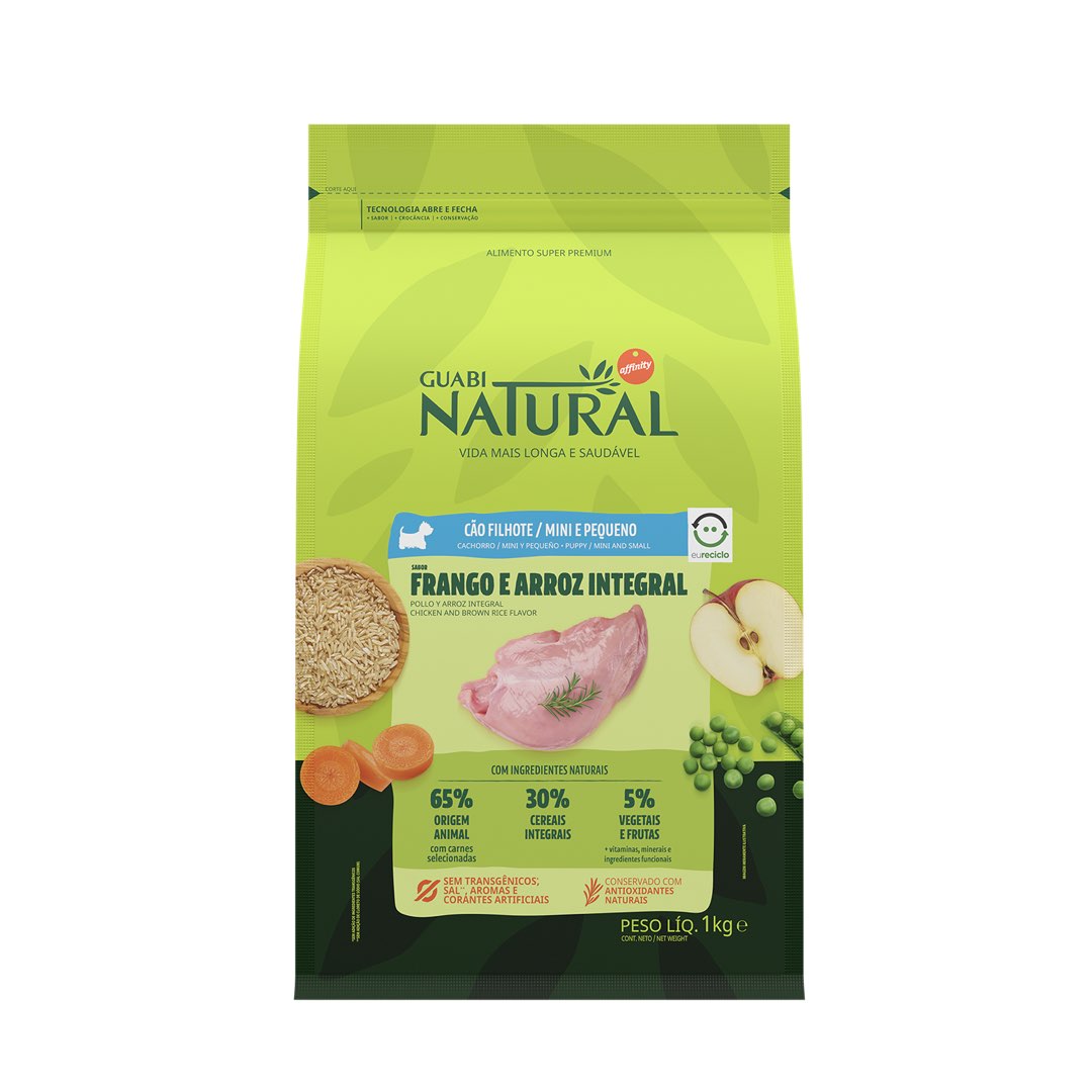 RAÇÃO GUABI NATURAL CÃO FILHOTE MINI E PEQUENO FRANGO E ARROZ INTEGRAL