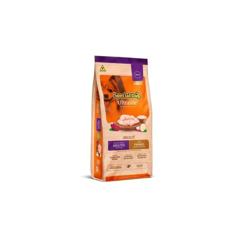 <p>A Ração Special Dog UltraLife Adultos Raças Pequenas Frango é completa, balanceada e da linha Premium Especial que é uma das melhores. Exclusiva para cães de pequeno porte, elaborada por veterinários, possui fontes proteicas de alta qualidade, prebióticos e fibras para o perfeito funcionamento do intestino. É enriquecida com farinha de batata doce e farinha de carne, promovendo a manutenção essencial para essa fase da vida do pet.</p>