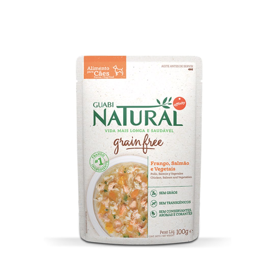 RAÇÃO ÚMIDA GUABI NATUAL SACHÊ GRAIN FREE CÃO ADULTO FRANGO, SALMÃO E VEGETAIS 100G