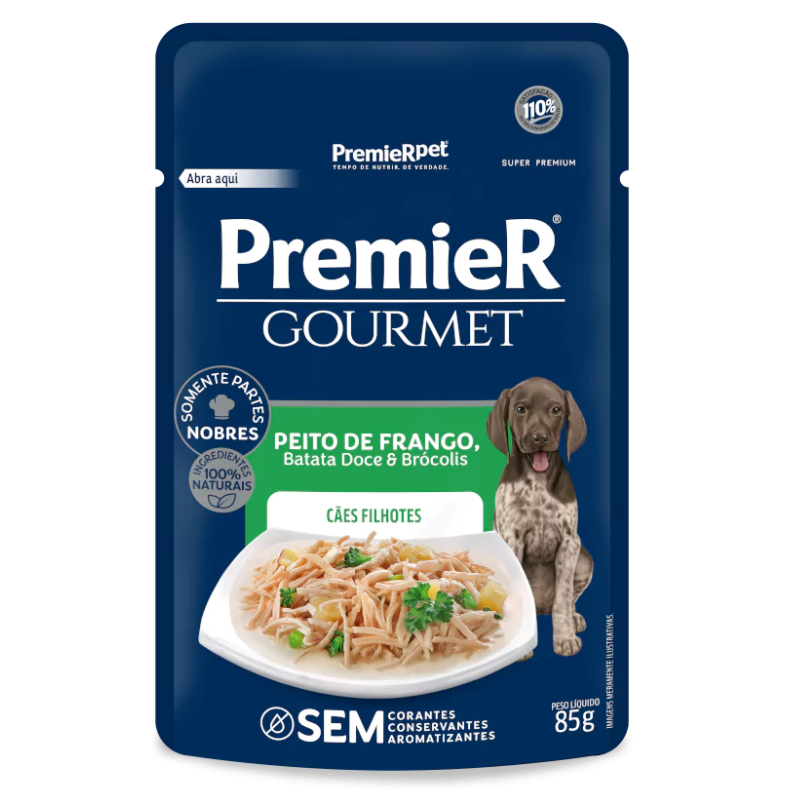 RAÇÃO ÚMIDA SACHÊ PREMIER GOURMET CÃES FILHOTES FRANGO 85g