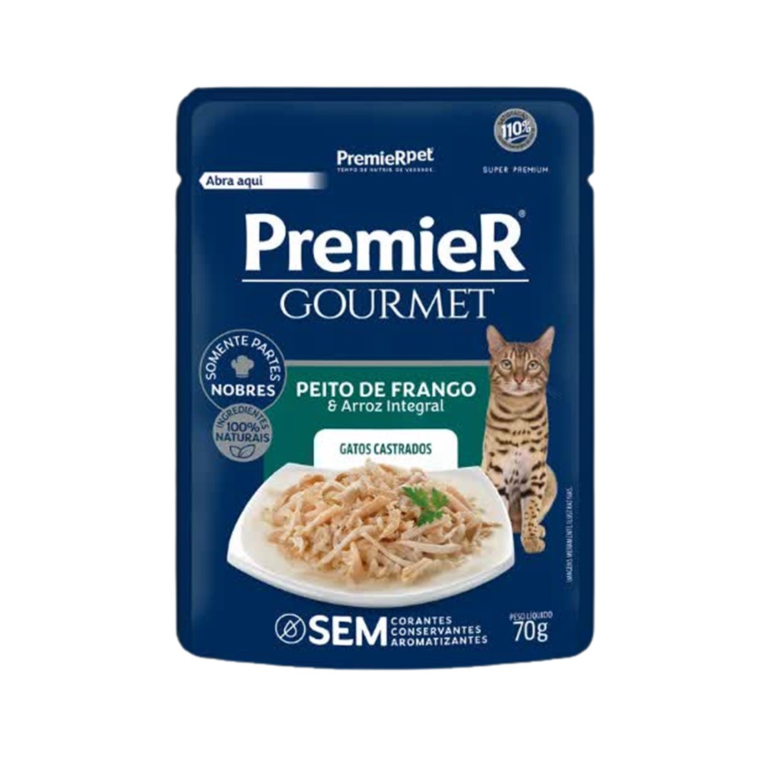 RAÇÃO ÚMIDA SACHÊ PREMIER GOURMET GATOS CASTRADOS ADULTOS FRANGO 70g