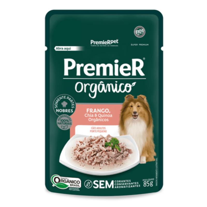 RAÇÃO ÚMIDA SACHÊ PREMIER GOURMET ORGÂNICO CÃES ADULTOS PEQ PORTE FRANGO 85g